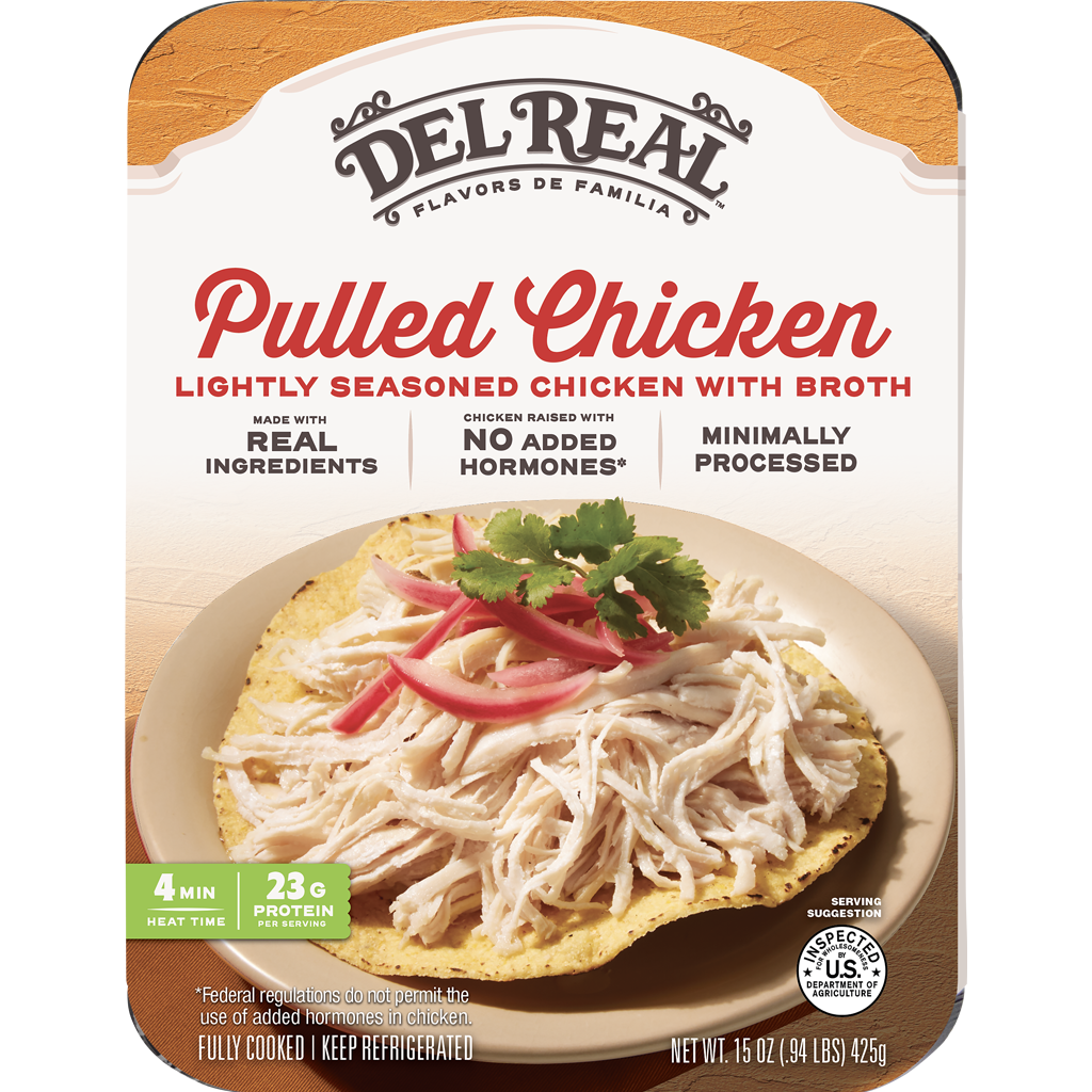 Shredded chicken with cooked out juices (chicken, water, onion, salt), Cultured dextrose, Salt, Garlic powder.